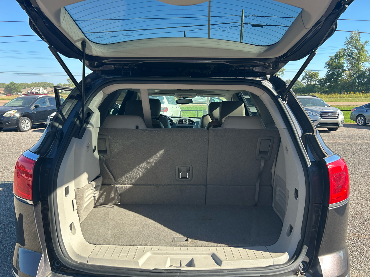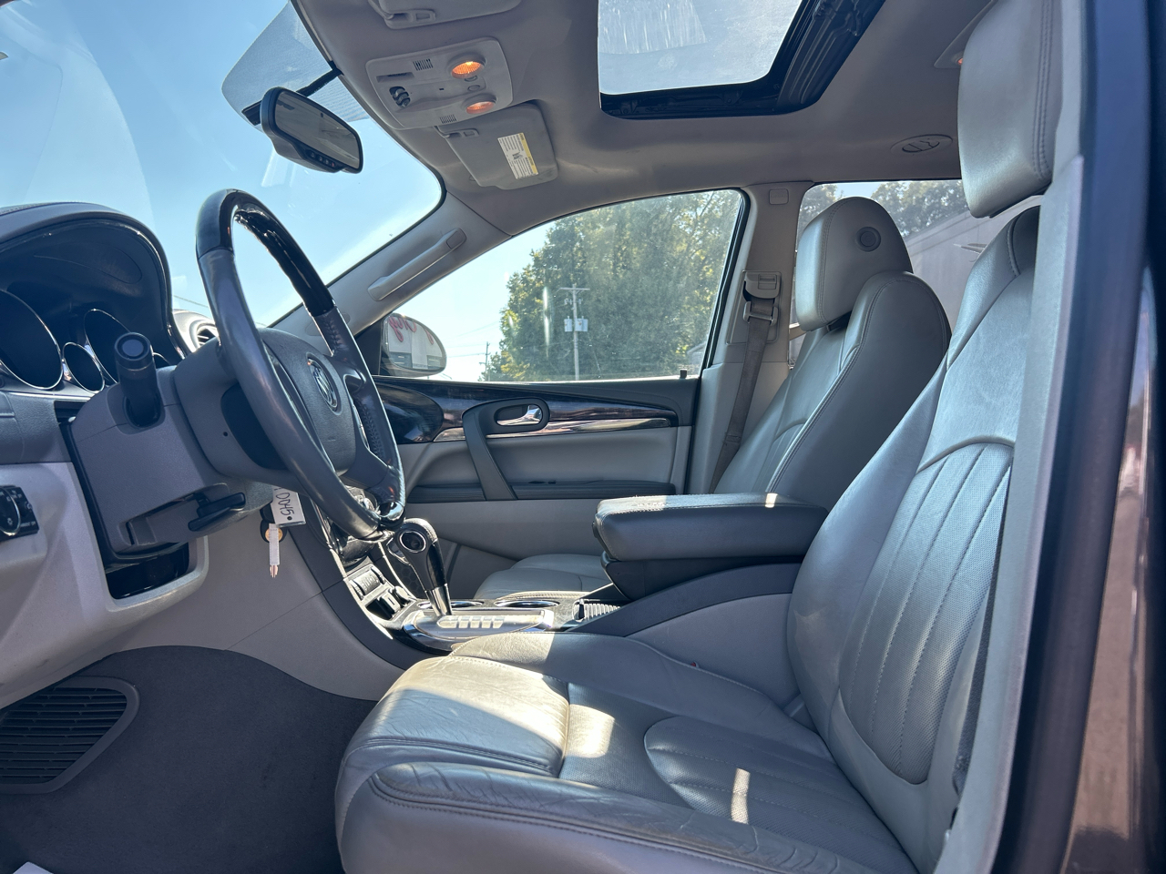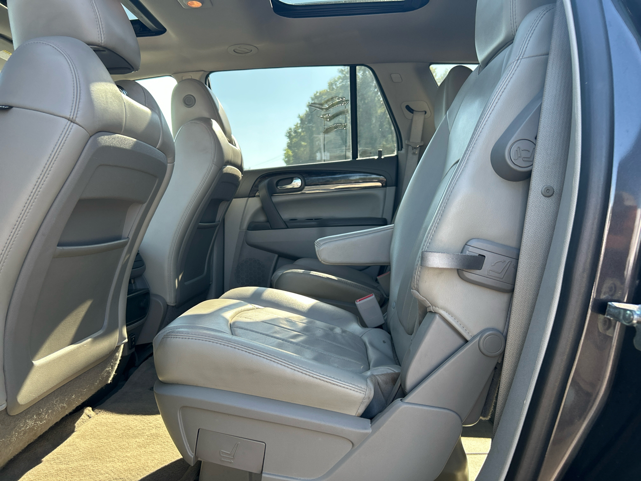 With plenty of room for the whole family, this Enclave offers luxurious leather seating with front heated seats for those chilly mornings. The genuine wood trim adds a touch of elegance to the interior, while the deep tinted glass provides privacy and protection from the sun.