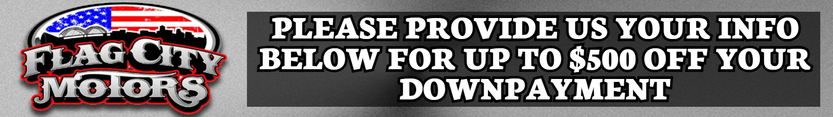 By checking this box I hereby consent to receive customer care text messages and/or phone calls from or on behalf of Flag City Motors or their employees to the mobile phone number I provided above. By opting in, I understand that message and data rates may apply. This acknowledgement constitutes my written consent to receive text messages to my cell phone and phone calls, including communications sent using an auto-dialer or pre-recorded message. You may withdraw your consent at any time by texting "STOP" or "HELP" for help. See our https://www.flagcitymotorstn.com/privacy for more information.